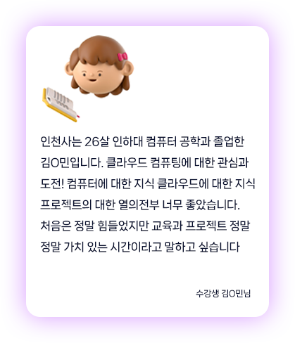 폭넓게 학습하여 MSP·MSO 등 클라우드 직무 취업에 필요한 실무 역량을 갖출 수 있습니다.