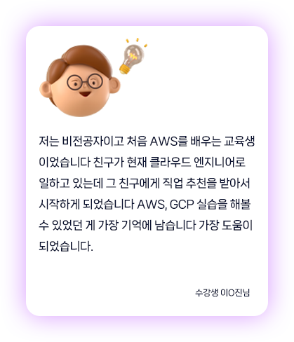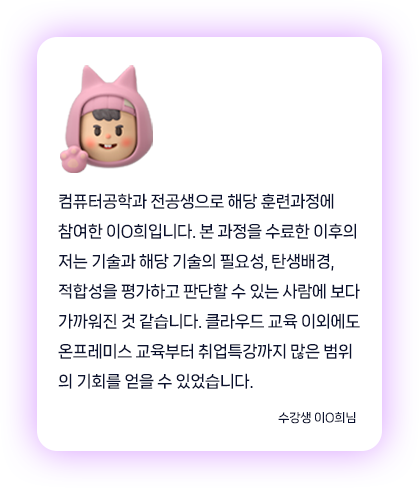 폭넓게 학습하여 MSP·MSO 등 클라우드 직무 취업에 필요한 실무 역량을 갖출 수 있습니다.